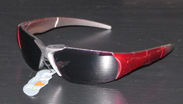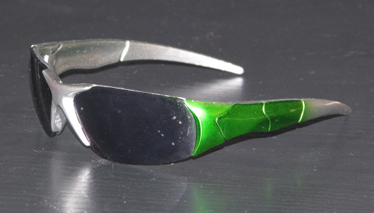 Colors available for these sunglasses are green with silver, blue with silver, red with silver and black with silver.